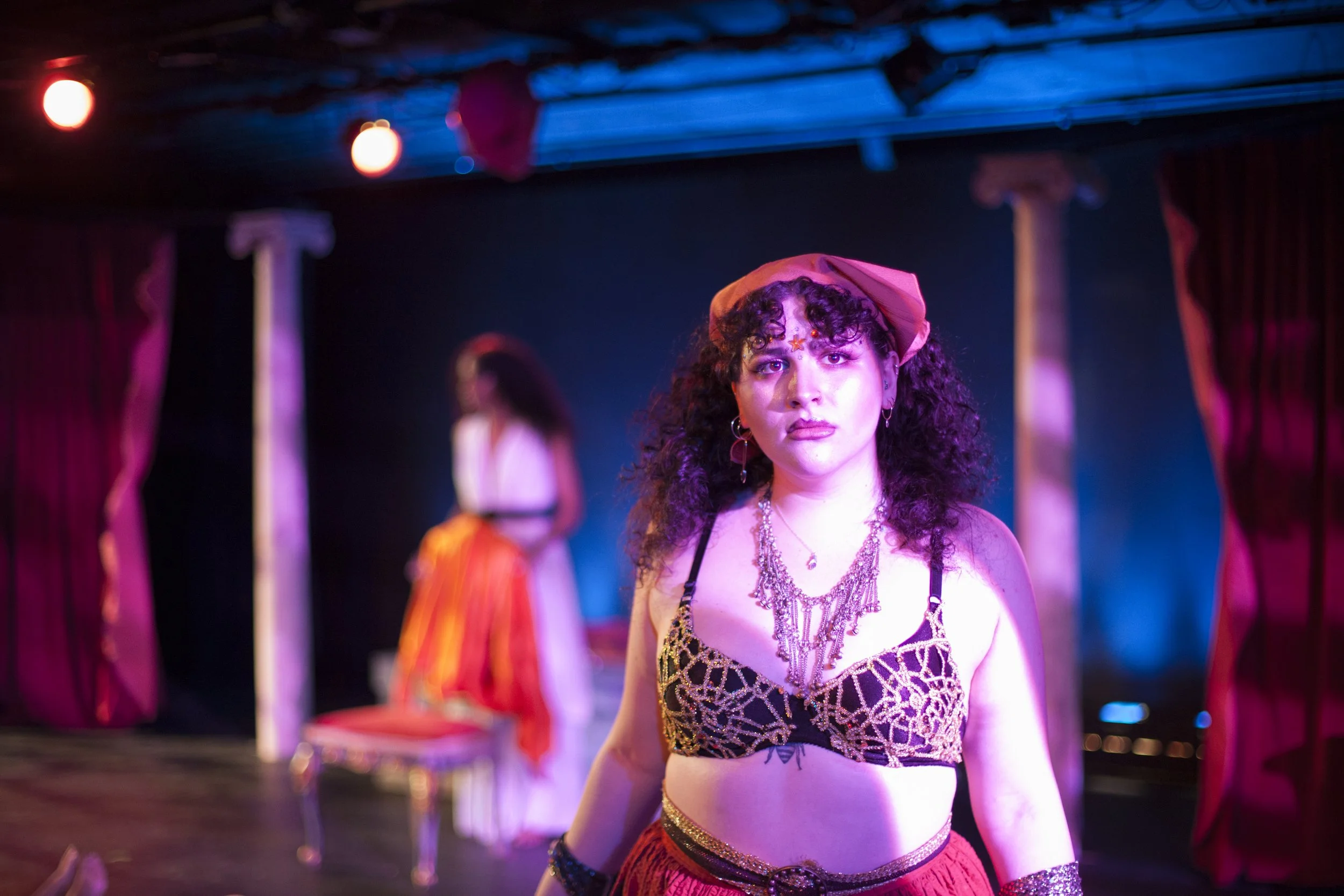 Medea (Mia Hernandez) fights with herself, literally, while Counter Medea (Kindall Storks) stands behind her insisting she must destroy her family to set herself free.